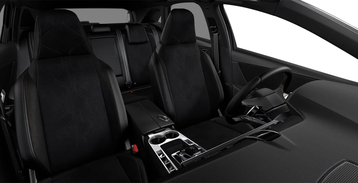 - BLACK PACK Calandra en negro brillante con inserciones en negro + DS WINGS molduras entre pilotos traseros y bajo pilotos traseros y barras de techo en negro brillante + marcos de las ventanas en negro brillante + Logo DS en negro PERFORMANCE